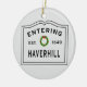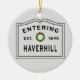 Buy one for everyone on your Christmas gift list. Christmas holidays in New England would not be complete without a festive Entering Haverhill ornament. Great gift idea for someone living in the town of Haverhill MA, or a Haverhill neighbourhood like West Parish, Salem Street, Walnut Square, Mount Washington, Rocks Village, or Riverside. Give one to your parents, grandparents, newlyweds, welcome to the neighbourhood, housewarming you name it!