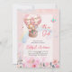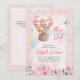 Pretty watercolor hot air balloon and jungle animals feature on this modern baby shower invitation for girls.