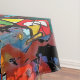 I am very pleased with this purchase. The quality is good, it is heavy and the image decorating it is brilliant and very eye-catching. When I first laid eyes on this tablecloth, still folded and in the transparent covering, it brought a smile to my face and I knew right away it was a good choice. A few days later my wife replaced our old tablecloth with this little gem and was quite satisfied. She noted that it is thick and fits the table very well with just enough hang over (although our dining table is extended by a traditional leaf which we keep in place even if we are not having guests over) and stays put instead of blowing all over the place. The image decorating this tablecloth is brilliant and very eye-catching. It looks even better than it appeared online.