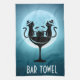 Moonlight Party Cat Bartenders Bar Theme Towels. Two cats having a time together party under the full moon kitchen or party bar towels. Cute pair of party cats in hues of blue background. Customise your bartending background colour online to create the perfect whimisical pet animal friend for bar party home decor.
