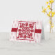 Hawaiian quilt design with tropical leaves, plant forms, and a flower with a red and white colour scheme. Red quilt stitches fill in the background. Design is radial symmetry like traditional Hawaiian quilts. Blank inside for your personal greetings or personalise for a Hawaiian holiday. Art, image, and verse copyright © Shoaff Ballanger Studios.