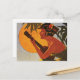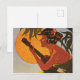 Hawaii girl playing ukulele on romantic sunset postcard