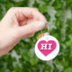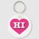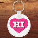 This key chain features a vibrant hot pink heart containing the bold, white, upper case letters HI, the official abbreviation for Hawaii, the aloha state.
