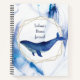 Beautiful watercolor design featuring a elegant ocean whale. Stylish gold coloured shape frame with your own title and monogram name. Blue and white watercolor background. Perfect journal for big dreams, gratitude, and journal activities.