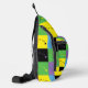 Do you like a Hawaii? This fun sling bag has a pop art pattern of the US state of Hawaii done in yellow, green, blue, red, black and purple.