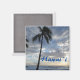 Hawaii magnet shows palm trees growing in the sand by the edge of the sea.