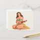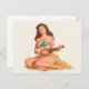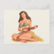 Hawaii pin-up girl plays small guitar, paint, art postcard