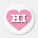 This magnet features a vibrant pink heart containing the bold, white, upper case letters HI, the official abbreviation for Hawaii, the aloha state.