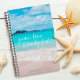 “Peace, love & sandy feet.” Remind yourself of the fresh salt smell of the ocean air whenever you use this stunning, vibrantly-coloured photo of a turquoise blue ocean and sandy beach, custom name yearly planner. A graphic light blue sun icon pattern overlays vibrant ocean turquoise blue on the back. This planner comes in 2 sizes: small (5.5”x8.5”) and medium (8.5”x11”). Enjoy this motivational quote and tropical photo all year long!