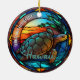 Cute faux stained glass tropical sea turtle scene, personalizable trip souvenir. Great for Christmas and family vacation keepsake, or honeymoon keepsake.