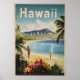 Rich, warm tones of gold and turquoise blend with muted greens and pinks, giving the design a nostalgic, retro charm reminiscent of mid-century travel posters. The bold, elegant text proudly proclaims “Hawaii,” inviting viewers to dream of adventure, relaxation, and the spirit of aloha.