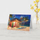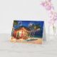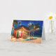 Artistic and cute Hawaiian beach bungalow decorated for the holidays on a sandy beach. Also available as a postcard or magnet. Can be personalised
