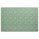Colourful and fun bright blue fabric, printed with a pattern of Hawaiian beach names on signposts. Plus yellow Hibiscus flowers and tropical palm leaves.