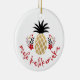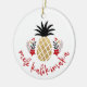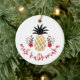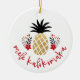 Show off your beach photos with this Hawaiian themed Christmas ornament. It is decorated with a gold pineapple and the words Mele Kalikimaka. Personalise it with your name and photo on the back. Designed for you by Blackberry Boulevard.