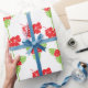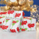 Hawaiian Christmas themed wrapping paper with red Hibiscus & Monstera leaves designed to look like a Hawaiian version of holly. The designs are connected by strings of Mokihana. The background colour can be changed to any colour you wish.