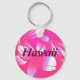 Bright pink and white flower design keychain, a vintage style Hawaiian floral print and text of Hawaii, the 50th state in the USA