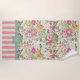 This lovely all-over floral pattern features various tropical flowers and foliage (hibiscus, plumeria, palm fronds) in shades of pink, fuchsia, coral, gold, lime and sage set against a creamy background. The top end of the towel has a coordinating cream and coral nautical stripe pattern and an aqua-green dividing stripe with a place for one custom initial. Use the easy, provided template and change the initial to your own! Bright, tropical, and cheerful - this beach towel with hold your place in the sun with style.