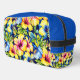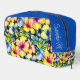 Custom personalised Hawaiian Hibiscus Flowered Pattern tropical large Dopp kit in bright yellow and blue colours. Tropical Hawaiian hibiscus flowers make this the perfect travel bag for summer beach vacations or staying organised at home. Click personalise to add your own name or monogram to the bag so there's no confusion over ownership!