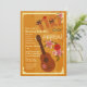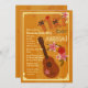 Planning a Hawaiian Style BBQ? This invitation is for you! It features exotic flowers, a Hawaiian guitar and the word "Tiki" stitched together with "wood". It's all framed with a pale yellow grunge border.