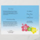 Create your own professional quality wedding programs with this easy to use bi-fold program template. This simple yet elegant program features a trio of Hawaiian hibiscus flowers on the cover. Inside text is set on a calm blue gradient background, just like the warm ocean of Hawaii. Simply replace sample text with your wedding information. Paper measure 8-1/2" x 11" You will need to fold programs into 8-1/2" x 5-1/2".