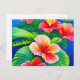 Hawaiian hibiscus tropical red flowers and green postcard
