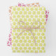 Wrapping paper sheets feature an original marker illustration of pink, orange and yellow tropical Hawaiian hibiscus flowers.