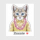 This design features a portrait of cat in a summer shirt and Hawaiian lei.