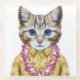 This design features a portrait of cat in a summer shirt and Hawaiian lei.