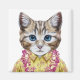 This design features a portrait of cat in a summer shirt and Hawaiian lei.