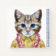 This design features a portrait of cat in a summer shirt and Hawaiian lei.