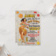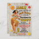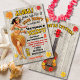 Super fun Hawaiian Luau Birthdayparty invitations with a vintage hula girl and hibiscus flowers against a weathered wood background. The back features a wooden ukulele.
