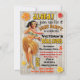 Super cool and retro Hawaiian Luau Bridal Shower Invitations with a vintage illustration of a beautiful hula girl welcoming you to a bridal shower. Fun typography, flowers on a weathered wood background.