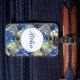 Custom luggage tag shown with a very tropical Hawaiian print with Aloha text.