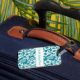 Custom luggage tag is shown with a very tropical Hawaiian print with text.