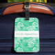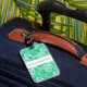 Custom luggage tag shown with a very tropical Hawaiian print with text.