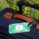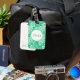 Custom luggage tag shown with a very tropical Hawaiian print with Aloha text.