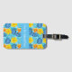 Custom luggage tag is shown with a very tropical Hawaiian print with text.