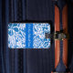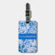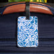 Custom luggage tag shown with a cute blue coloured hawaiian print with text. Customise this tag or buy as is.