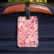 Custom luggage tag shown with a cute red coloured hawaiian print with text. Customise this tag or buy as is.