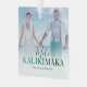 Modern hawaiian christmas glass ornament featuring a photo of your own, the saying "mele kalikimaka" in a elegant script & green/blue gradient font, and your names.