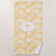 Bring tropical vibes to your day with this classic Hawaiian-inspired beach towel design. Featuring lush white palm trees silhouetted against a summery background in shades of golden yellow, this pattern captures the timeless beauty of island life. Perfect for beach-themed events, luau-themed parties or summer cottage, this versatile design adds a touch of the tropics to your sun-tanning or picnic. Customise the pattern size and personalise text to make it uniquely yours. Search ID1093 to see other products with this design.