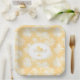 Bring tropical vibes to your home with this classic Hawaiian-inspired paper plate design. Featuring lush white palm trees silhouetted against a summery background in shades of golden yellow, this pattern captures the timeless beauty of island life. Perfect for beach-themed events, luau-themed parties or summer cottage, this versatile design adds a touch of the tropics to your decor. Customise the pattern size and personalise text to make it uniquely yours. Search ID1093 to see other products with this design.
