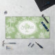 Bring tropical vibes to your home or office with this classic Hawaiian-inspired desk mat design. Featuring lush white palm trees silhouetted against a summery background in shades of green, this pattern captures the timeless beauty of island life. This versatile design adds a cheerful touch of the tropics to any room. Customise the pattern size and personalise text to make it uniquely yours. Search ID1093 to see other products with this design.