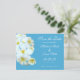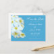 Pretty sea blue save-the-date postcards. Tropical plumeria flowers in white with yellow centres is the design on sea blue cards. Easily customise white text in script and printed fonts. Reverse has lines to address for mailing.