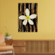 The contrast of paper-thin white petals against a rugged piece of timber - each fragile in their own way - make this a standout piece...a centerpiece for your gal cave or smack dab in the middle of your living room wall. The delicate flower is a small white plumeria (the Hawaiian lei flower) with a lemon yellow throat.