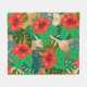Bundle up with this amazing tropical foliage themed fleece blanket! Think of warmer climates with beautiful multi-green hued tropical leaves, fronds, and red hibiscus flowers.