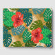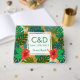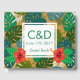 Hawaiian luau wedding themed guest book with the couple's names and wedding date in dark green text.