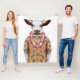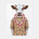 This design features a portrait of cow in summer shirt with a Hawaiian lei.