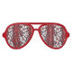 Fun luau party sunglasses with a red and white Hawaiian shirt floral pattern on the lenses