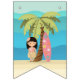 This sunny and bright island beauty design features a cute Hawaiian girl and her pink floral surfboard. The ocean calls this little girl, as she is ready to surf the island waves on this beautiful and sunny beach. This tropical island theme is the perfect design for your little one’s birthday luau and hula.